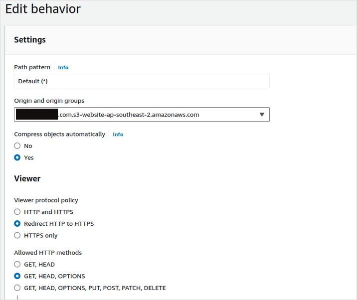 - create behaviour pointing to your origin, and Redirect Http to Https